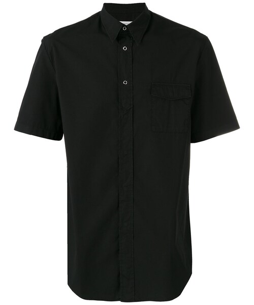 Maison Margiela(メゾン・マルジェラ)の、シャツ(ブラック)。ポインテッドカラー、ボタン留め、半袖、曲線的な裾。コットン製。洗濯方法:30℃の液温で、洗濯機で洗ってください。