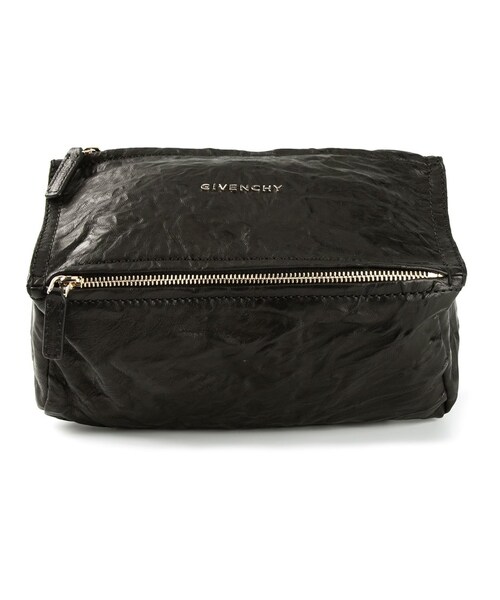Givenchy(ジバンシィ)の、Pandora ショルダー ミニ(ブラック)。スクエアシルエット、トップファスナー式開閉、前面にロゴプレート、調節可能なショルダーストラップ、シワ加工、コットンの裏地。シープスキン製。