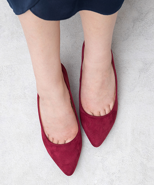 ベーシックに活躍するポインテッドパンプス。女性らしい品格のある起毛素材で季節感も同時にアプローチします。カジュアルやフェミニンなオフィスstyleまで合わせやすく、ポインテッドのシャープさでスタイルupも狙える1足です。