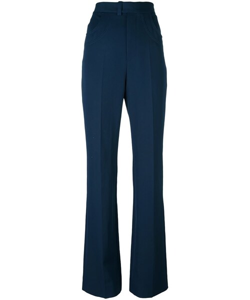 Maison Margiela(メゾン・マルジェラ)の、フレアパンツ(ブルー)。ハイウエスト、ウエストバンド、ベルト通し、サイドポケット、背面にボタン付きポケット、標準丈、センタープレス加工。コットン製。