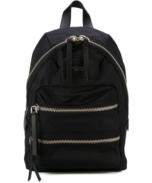 Marc Jacobs (マーク・ジェイコブス)の、Biker バックパック(ブラック)。トップハンドル、トップファスナー、前面にロゴワッペン、前面にファスナー付きポケット、調節可能なショルダーストラップ。