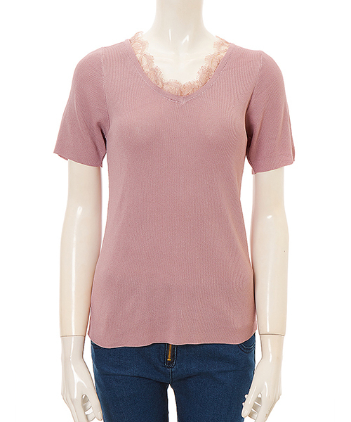 着回し力が自慢のマストハブベーシックアイテム ボディラインに程よくフィットし、安心感のある着心地が魅力のリブニットトップス。華奢なネックラインをキレイに魅せるVネックにレースをあしらい、デザイン性と華やかさを添えました。色違いでキープするのもオススメです。