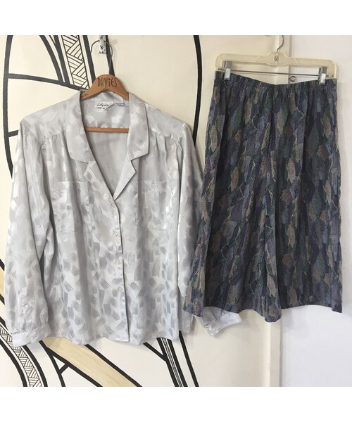 ●キュウリガン店内全品送料無料● ユニセックスで使える一点物古着 【生産国】 トップス韓国製 【素材】 ポリエステル100% 【MEN or WOMAN】※男性物or女性物 WOMAN 【サイズ表記】 46 【実物サイズ感】 男性L~XL 女性XL トップス 着丈75cm 身幅70cm 肩幅48cm 袖丈65cm パンツ ウエスト平置き36cm~(ゴムウエスト) 股上36cm 股下37cm 裾幅44cm 【カラー】 グレーベース 【その他】 【状態】 特に目立ったダメージなし *着画モデル 男性モデル 175cm80kgの大柄体系 女性モデル 155cm44kgの小柄体系 *USEDアイテムですので状態は様々になりますのでご了承下さい。
