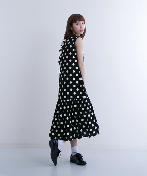 大き目のドット柄がキュートなワンピース一枚でらくちんコーデが完成しちゃいます 足元はスニーカーやサンダルでとことんカジュアルがかわいい◎