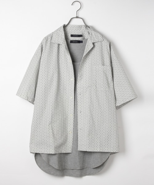 インパクト抜群の幾何学柄の開襟シャツです。首元をすっきりみせてくれる開襟シャツは、この夏マストで持っておきたいアイテム!肩をドロップショルダー仕様にし、今年人気のワイドシルエットに仕上げました。ロング丈のインナーや、ワイドパンツとの相性も抜群です。