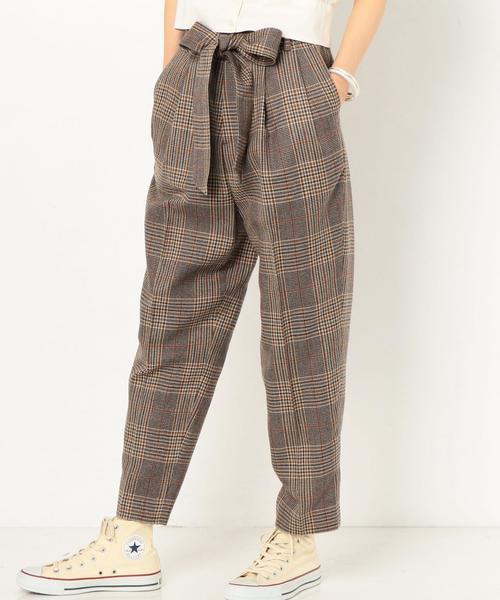 半端丈のテーパードパンツは タックを寄せたことでカジュアルに取り入れ易いレッグラインに。 ウエストのリボンがポイントなので、 シンプルなトップスのインスタイルもサマになります。 チェック柄はマニッシュな雰囲気もプラスします。 ※着用、お取り扱いの際は商品についておりますアテンションタグ、洗濯ネームを必ずご確認ください。 店舗へお問い合わせの際は、全国のAnother Edition 各店舗まで下記の品名/品番をお申し付け下さい。 品名:AECM CHK TUCK RBN PT 品番:5614-199-2297