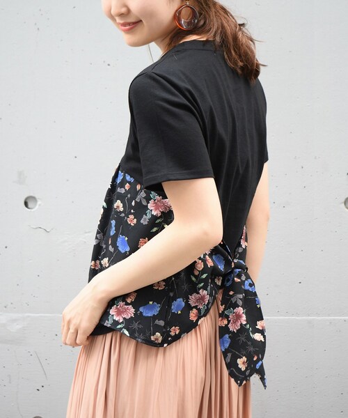 【2017S/S】 Spick & Span 今年らしいフラワープリントをレイヤードしたTシャツ。程よく肉厚ながらもソフトな肌さわりで、これからのシーズンにも着心地◎ビスチェ風なフラワープリントの別布がスタイリングのアクセント。背面は、ノットディティールを取り入れバックスタイルもポイントになりますよ。夏に活躍する一着です。■ご自宅で手洗い可能なのも嬉しいポイント!本体:手洗い可能 ※取り扱いについては、商品についている品質表示でご確認ください。 ※こちらの商品は、Spick & Spanでの取り扱いになります。 直接店舗へお問い合わせの際は Spick & Span店舗へお願い致します。 ※店頭及び屋外での撮影画像は、光の当たり具合で色味が違って見える場合があります。商品の色味は、スタジオ撮影の画像をご参照ください。ブラック着用スタッフ:161cm 着用サイズ:FREEホワイト着用スタッフ:161cm 着用サイズ:FREEモデルサイズ:身長:170cm バスト:75cm ウェスト:60cm ヒップ:83cm 着用サイズ:フリー