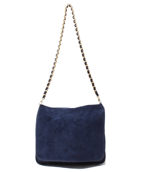 スエード素材にゴールドチェーンがエレガントな雰囲気のショルダーバッグ。シンプルなデザインに、ステッチの装飾がアクセントになっています。 ※この商品は天然皮革を使用し、ファッション性を重視した裏地の付いていないデザインです。 色移りは革の表裏面ともにあり、摩擦・水漏れ等によって衣類や鞄の中身に色が移る可能性があります。特に薄い色の衣類でのご使用にご注意ください。 又、鞄の中身への色移り、皮の裏面の繊維の付着を防ぐため、同系色の巾着等をご使用になることをおすすめします。