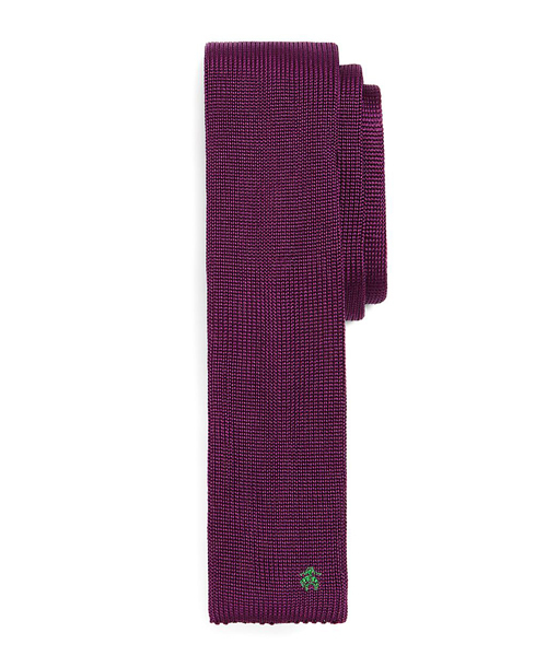 イタリア製のシルクニットタイ 大剣部分に小さなGF(ゴールデンフリース)マークが刺繍されています。カジュアルなコーディネートのアクセントにお薦めです。