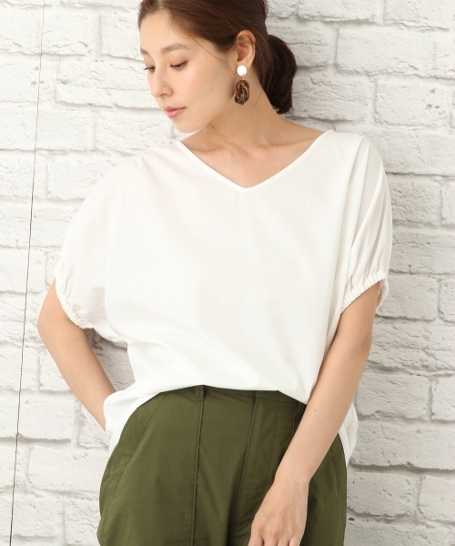 袖にゴムギャザーを寄せたふんわりとしたフェミニンな印象のブラウス。さらっとした夏素材で今からの時期に快適に着て頂けるアイテムに仕上げました。 肩にいれたタックで立体的なシルエットに。 デニム合わせのスタイリングはもちろん、スカートと合わせたスタイリングもおすすめ。 幅広いスタイリングが楽しめる点も◎