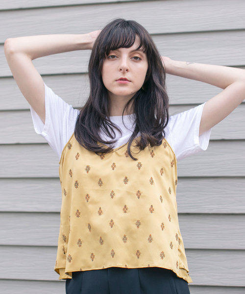 ◆総刺繍が今年らしいキャミソール◆【Fabric】小紋柄の総刺繍を施したキャミソール。華奢な刺繍と細めな肩ひもが女性らしさをより出してくれます。さらっとした着心地なので簡単に”大人女子”スタイルが完成します。【Coordinate】今季は色味のあるリブニットやTシャツとのスタイリングがGOOD。ワイドパンツや長めのスカートとの合わせがおすすめです。