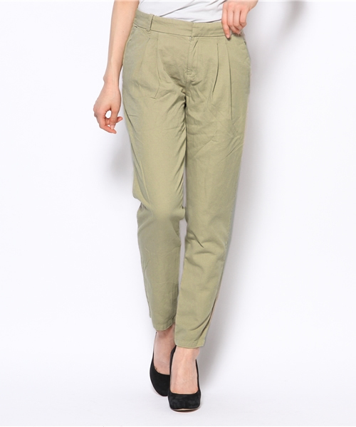 キチンと感のあるタック入りテーパードパンツ。きれいめな印象の1枚はONにもOFFにも活用できそう。独特のゆるシルエットが大人のカジュアルスタイルにぴったり。model:H165 B83 W61 H85 着用サイズ:1