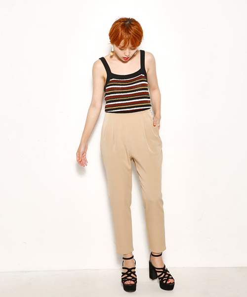 腰周りはタックでボリュームを出し、膝下は程よくフィットさせることで体型をカバーしてくれるスタイルアップパンツです。