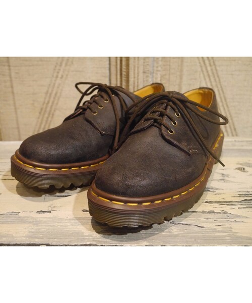 ドイツの医師クラウス・マーチンが創設したシューズブランドです。特徴はバウンシングソールと呼ばれるエアの効いた厚底。長い時間履いていても疲れません。マーチン特有のデザイン・機能性で、幅広い年齢層の方たちから絶大な支持を得ています。 1461ギブソンシューズです。Dr.Martensの定番アイテムですが、オイルドスエードタイプで珍しいと思います。デザインがとても可愛くて、どんなスタイルにも合わせやすく、1足は持っておきたいシューズです。 サイズ:4(23.0cm) カラー:ブラック ※実際の色合いとは異なって見える場合がございますが、ご了承ください。 ※サイズは丁寧に採寸しておりますが、多少の誤差が出る場合がございます。