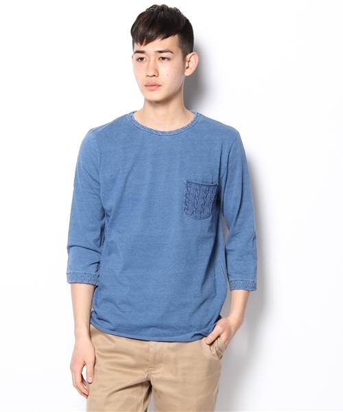 【Indigos】INDGOクルーポケTP/Oです。 Indigo染めを用いた、デニム仕立てのカットソーは、【Ciaopanic】では今シーズンも人気のアイテム ラフでルーズな雰囲気とindigoのアメカジテイストがマッチしたカジュアルTシャツ ショートパンツとサンダルを合わせてフラットに。