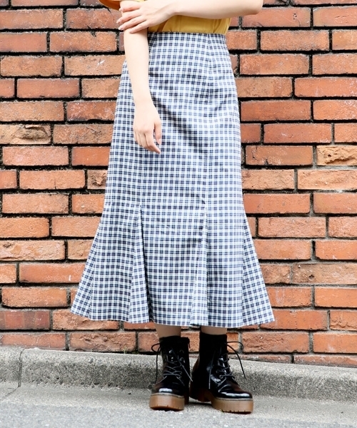 大注目!!マーメイドスカート ロング丈で切り替えから広がる裾がかわいいマーメイドスカートが登場!! タイトスカートの大人めなシルエットと女性らしいマーメイドデザインで1枚でアクセントになること間違いなし☆ チェック柄でカジュアルさをプラスしてあるので、Tシャツ合わせなどでラフに合わせても可愛いですよ! 縦のラインが強調されるのでスタイルUP効果も♪