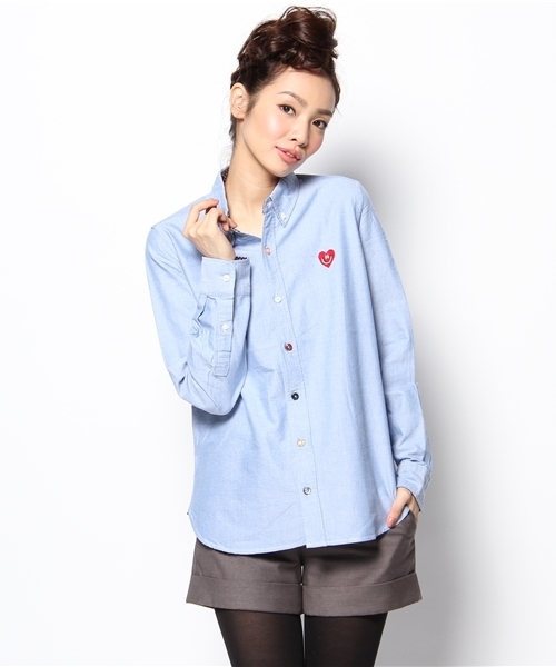 I HAVE LOVEのBDシャツになります。おなじみのハート刺繍が可愛いシャツになります。model:H165 B80 W58 H85 着用サイズ:SMALL