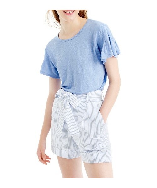 The easy linen tee + relaxed ruffles = the perfect summer layer. Brand: J. CREW. Style Name:J.crew Linen Flutter Sleeve Tee. Style Number: 5388626. Available in stores.