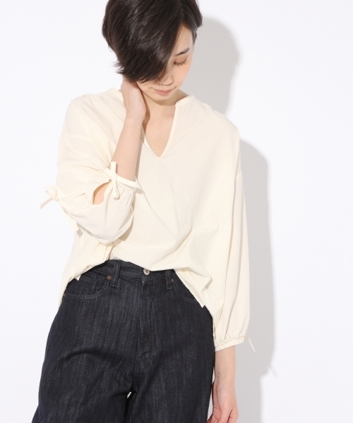 袖の連なるリボンデザインがポイントのシャツ。 少し肩を落としたこなれた着こなしで大人っぽい印象に。 ボルドーをはじめ秋カラーも魅力。
