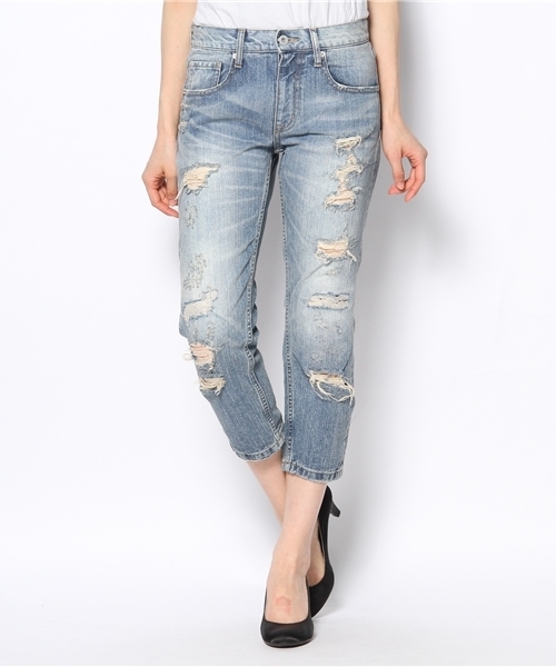 【Ciaopanic】クラッシュDENIMです。 人気のクラッシュデニムをテーパードパンツで◎ 爽やかな色合いとクラッシュのデザインがマッチ♪♪ Tシャツとサンダルで夏らしいスタイリングにピッタリの1本☆★