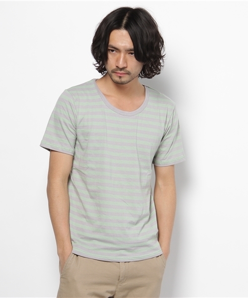 ベーシックなボーダーTになります。一枚でもインナーでも使えるアイテムになります。 model:H180 B88 W73 H89 着用サイズ:LARGE