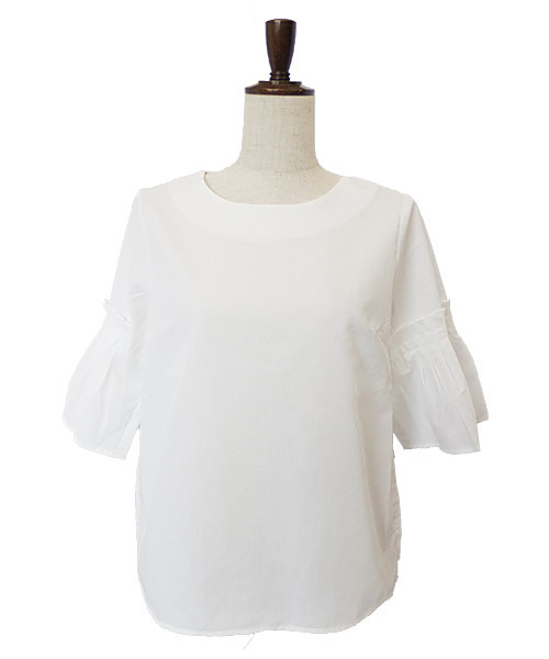 袖にたっぷりとギャザーを寄せボリュームを持たせた女性らしいアイテム。綿混の肌触りの良い素材を使用し、さらっとした着心地の良い1枚。ボトムスと相性がよく、これからのシーズン1枚あればフル活用できるアイテムです。さらっとした、ハリのある綿混素材です。【素材の厚み】薄手素材【チクチクする?】チクチクしません。【透け感】ライトカラーは透けやすいです。