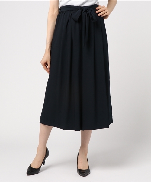 スカート見えに近いジョーゼットガウチョパンツ!柔らかい素材で仕立て穿きやすく、共地ベルトでウエストマークするとタックインが映える1本。ブラウスやシャツ、ニットまで相性よく、大人ベーシックスタイルの完成です。※裏地付き