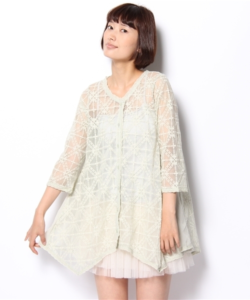 人気のエンブロイダリーチュールガウンが再入荷致しました!全体的に透け感があるので、インナーの色で雰囲気を変えて頂けます☆裾広がりのデザインはスキニーパンツやショートパンツにぴったりです。Tシャツをインナーに着て羽織としても大活躍するアイテムです。