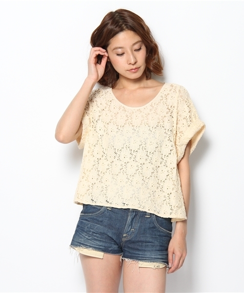 カラフルなレースが夏らしいTシャツです☆総レースで透け感があるので、インナーの色を変えて頂くと雰囲気を変えて頂けます。メインにも重ね着にも着れるので、2色買いしたくなるアイテムです。 *ONLINESTORE限定価格となります。