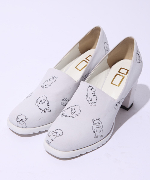 iの新作のパンプスです。足元にもikumiのオリジナルのかいじゅうがプリントされた可愛いアイテムです。無地のタイプはシックに履いて頂けます。