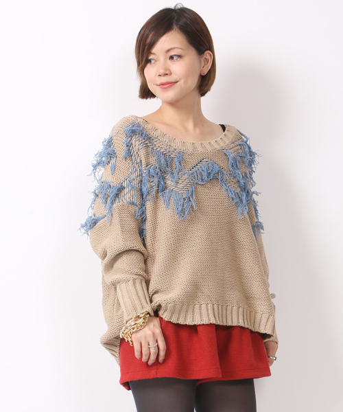 mystic(ミスティック) ジグザグについたフリンジ使いがポイントのニットは遠くから見ても目を惹く1枚です! ボトムスをコンパクトにまとめれば、バランス良く着こなせます。