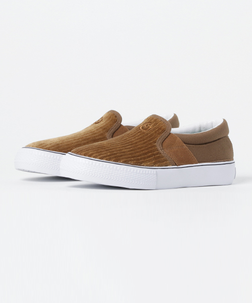 gravis CLAYMORE BILLY'S EXCLUSIVE 今回で3回目となるgravisとの別注モデルは、スリッポンタイプの「CLAYMORE」。 VINTAGEの古着からインスパイアされ、太畝のコーデュロイ素材をアッパーに使用することにより、90年代のストリートカルチャーを感じさせる絶妙な風合いに仕上げている。 ペールトーンのカラーリングが、ストリートでの落ち着いた大人な足元を演出します。 もちろん、インソールはgravisが独自開発した”C9“インソールを搭載し、抜群のフィッティングを実現。 デザイン、機能を兼ね備えたBILLY’Sのみで展開する完全エクスクルーシブモデル。