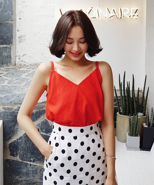 シルキーな素材感で高級感漂わせるスリーブレス!デコルテをキレイに見せるV字ネックで女性らしい色っぽさを演出♡ゆとりあのある着心地感で夏場の着用も快適^^ワイドパンツにインするとこなれ感あるスタイルでおしゃれにまとまる♪ ※WEARに記載してある金額と、DHOLIC通販サイトに記載してある金額にシステム都合上、稀に誤差が生じます。正しい金額はDHOLIC通販サイトに記載された金額です。