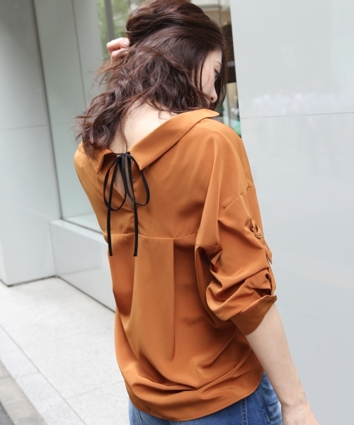 アンデミュウ人気のバックリボンブラウスが秋Ver.になり登場! ヌケエリブラウスに細いリボン、ブラックの配色になっているのでポイントになってくれます。 そでにロールアップできるDカンベルトが付いていて、少しカジュアルにも♪ フレアースカートで甘めにきても、デニム合わせでカジュアルにきても◎