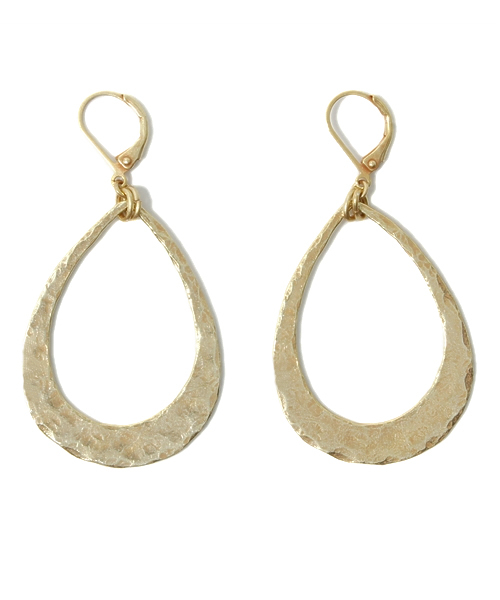 プレートを叩いて、味をだしたシンプルな中にもこだわりがあるアクセサリー。丸型より雫型の方がすっきりしたデザインで大人っぽく仕上がります。どんなスタイルにもどんなネックレスでも合わせやすい万能ピアスです。