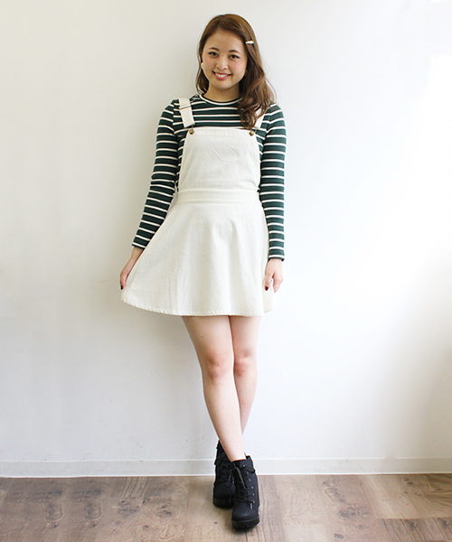 who's who Chico 注目のサロペットはフィット&フレアタイプなのでスタイル良く着て頂けます。 子供っぽくなりがちなサロペットですが、こちらはシルエットがとても綺麗なので大人っぽく着て頂けます。スタイリングもシンプルにボーダーのトップスなどと合わせると大人っぽく素敵に着て頂けます。 足元にレースアップブーツや少し大人っぽくサロペットを着たい方にはローファーなどで合わせて頂いても可愛く着て頂けます。 model:身長157cm 着用サイズ:F ブラック model:H163 B86 W60 H87 着用サイズ:FREE