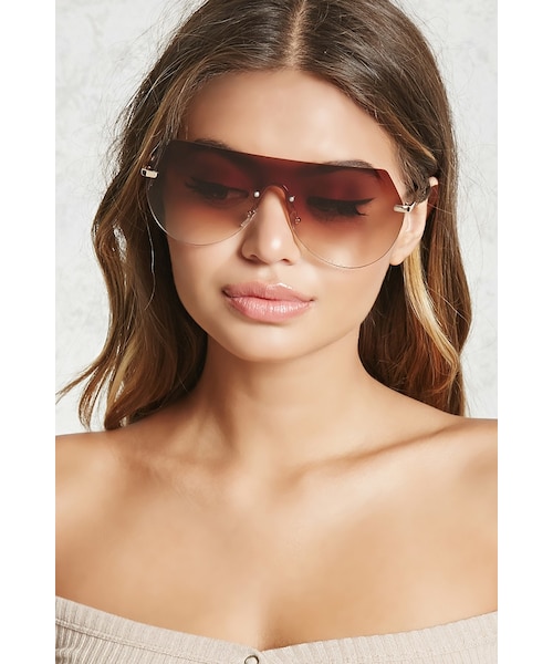 リムのない個性的な形をしたサングラス。グラデーションレンズが印象的な目元を演出。コーデにパンチをプラスしたい時にオススメのアイテムです。-生産国:中国-サイズ:高さ5.7cm×幅15.2cm-UV加工