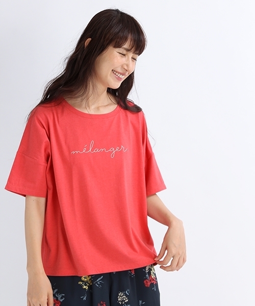 胸元に手書き風の繊細なロゴがポイントのTシャツです。 Tシャツのシルエットはさりげない揺れ感があり、 衿元も適度な抜けもあり今年らしいシルエットに。 ロゴに合わせて女性らしい印象に仕上げています。 ※mélanger:フランス語で『混ぜる(ミックス)』