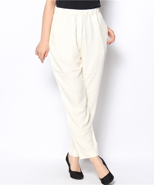 Kastane(カスタネ) ウエストがゴムで履きやすく、テーパードなのでキレイなラインのパンツは活躍する事間違いなし。色違いで何枚持っていてもいいくらい使いやすいパンツです。ポケットが両脇についているのも嬉しいデザイン。
