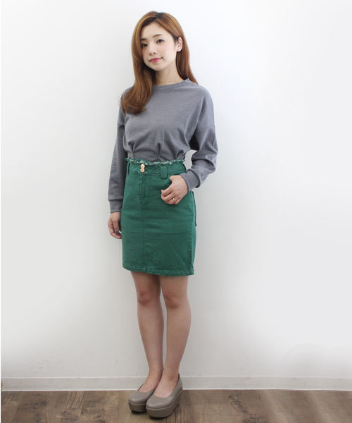 Kastane(カスタネ) 膝上のベーシックな丈ながら、ウエストの裁ち切りデザインがポイントのタイトスカート。シンプルなトップスがトレンドになりそうな秋冬はトップスをインするだけでこなれた印象になります。サイズ展開が豊富なので自分にピッタリな一着を見つけて下さい。 model:身長155cm 着用サイズ:S
