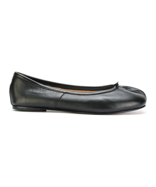 Maison Margiela(メゾン・マルジェラ)の、足袋スタイル フラットシューズ(ブラック)。ラウンドトゥ、レザーのトリム、フラットヒール、ドローストリング。