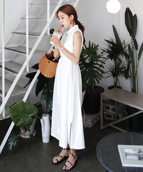 スリーブレスで涼し気な印象に仕上がったシャツワンピ!スマートなIラインと裾のスリットでスタイリッシュなコーデの完成♪セットのベルトでお好みでシルエットを変えて着方が楽しめる! ※WEARに記載してある金額と、DHOLIC通販サイトに記載してある金額にシステム都合上、稀に誤差が生じます。正しい金額はDHOLIC通販サイトに記載された金額です。