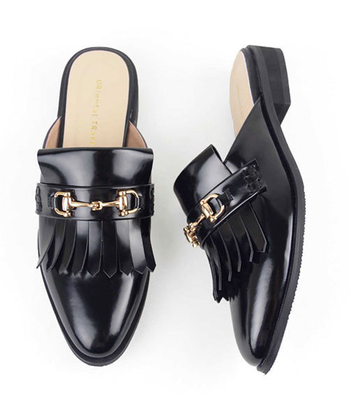雑誌掲載多数! 人気継続中のスリッパは、フリンジ×ビットモチーフのメンズライクさで他と差をつけたデザイン。定番で使いやすいブラックの他に、キャメル、レッドは深めのカラーでひと足早く秋気分にしてくれそう。パンツルックに合わせると抜け感が出ておすすめ。 【オススメPOINT】 ◇深めの履き口で脱げにくい ◇ソックスとの相性がいいので長く履けるアイテム