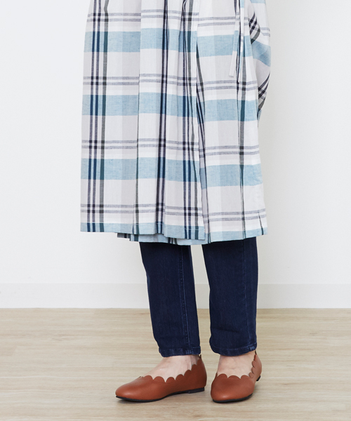 履き心地の良いフラットシューズ。スカラップカットがフェミニンなアクセント。シンプルながら、女性らしさをキープ出来るアイテムです。
