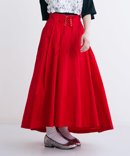 ウエストマークのデザインがポイントのフレアスカート。ハリ感のある素材にフロントタックがキレイなボリュームを出してくれています。 フェミニンなブラウス、カジュアルなカットソーなど合わせるアイテムを選びません。 デイリーに活躍する一着です。