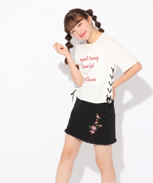 ☆nicola×KAYA×repipiコラボ☆カヤレピコラボアイテムが完成っ♪テーマは、「CINEMA GIRL」サイドレースアップで一気におしゃれ見え♪モノトーン配色だから、大人っぽい印象に!!ちょっぴりショート丈でトレンド感もぐぐんとアップ!カジュアルにもガーリーにも着まわせてとっても優秀◎女優でも活躍するカヤちゃんをイメージしたロゴにも注目っ!