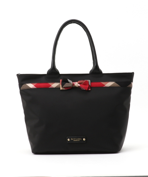 ブランドのアイコンである「クレストブリッジチェック」を使用したリボンがアクセントとなったラージサイズのトートバッグ。 ナイロン素材で、軽くて持ち易いのが特徴です。 間口がファスナー仕様になっているので、安心して使用できます。 A4サイズも収納できます。