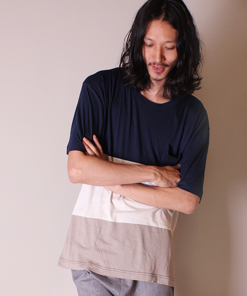 Lui’s(ルイス) Lui's(ルイス)オリジナルの上質な素材を使用した、切替ボーダーBIGTの入荷です。 シルク混の素材感が着心地を良くし、更に同素材での切替になりますのでデザイン性も有ります。ボーダーをベースにデザインしておりますので、どなたでもスタイリングに取り入れやすいデザインになります。
