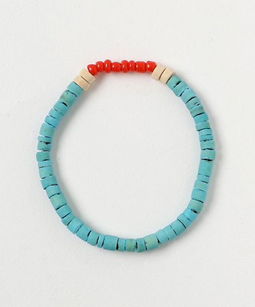 ウッドビーズをあしらったブレスレット。シンプルな配色ながら、手軽に着こなしのアクセントになります。既にお使いのブレスに合わせた重ね付けもオススメ。男女問わずユニセックスでお使い頂けるので、ご自身用は勿論、プレゼントにもオススメです