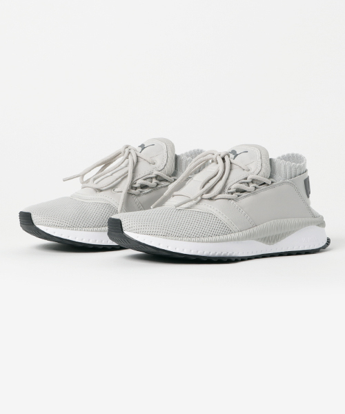2017Summer ライフスタイル コレクションより、TSUGI シンセイです。「TSUGI」は日本語の「次」の響きからとり、まさにその名から連想できるようにプーマの次の世代を見据えた全く新しい革新的なデザインのスニーカーが2017S/Sシーズンより登場。日本の建築からインスパイアされており、その斬新的なデザインは、クッション性の高いIGNITE FOAM、ユニークなシューレースデザイン、そして編み込まれたソックタイプから構成されたています。PUMAの持っている最新のクッショニング機能IGNITE FOAM(イグナイトフォーム)をミッドソールに配置し、ストレスの少ない履き心地を提供します。 サイドにシューレースのメインパーツを配置しできるだけ足の甲への負担を軽減し、圧迫感を防ぎ長時間の使用でも快適なフィッティングを実現します。また、ソックス構造が快適な履き心地と軽量感を演出します。PUMAから発信する全く新しいストリートウエアのコレクションの核となる注目のモデルです。